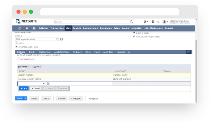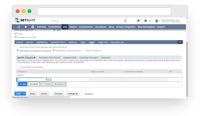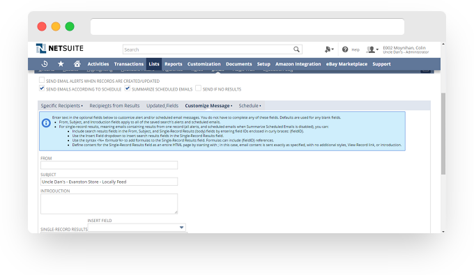 It's easy to create and schedule the Locally file in Netsuite. Netsuite emails Locally the file automatically, at your desired frequency. Every store location in our system has a unique email address assigned that inventory files can be sent to. View it in your locally.com account under "Email Method" here.